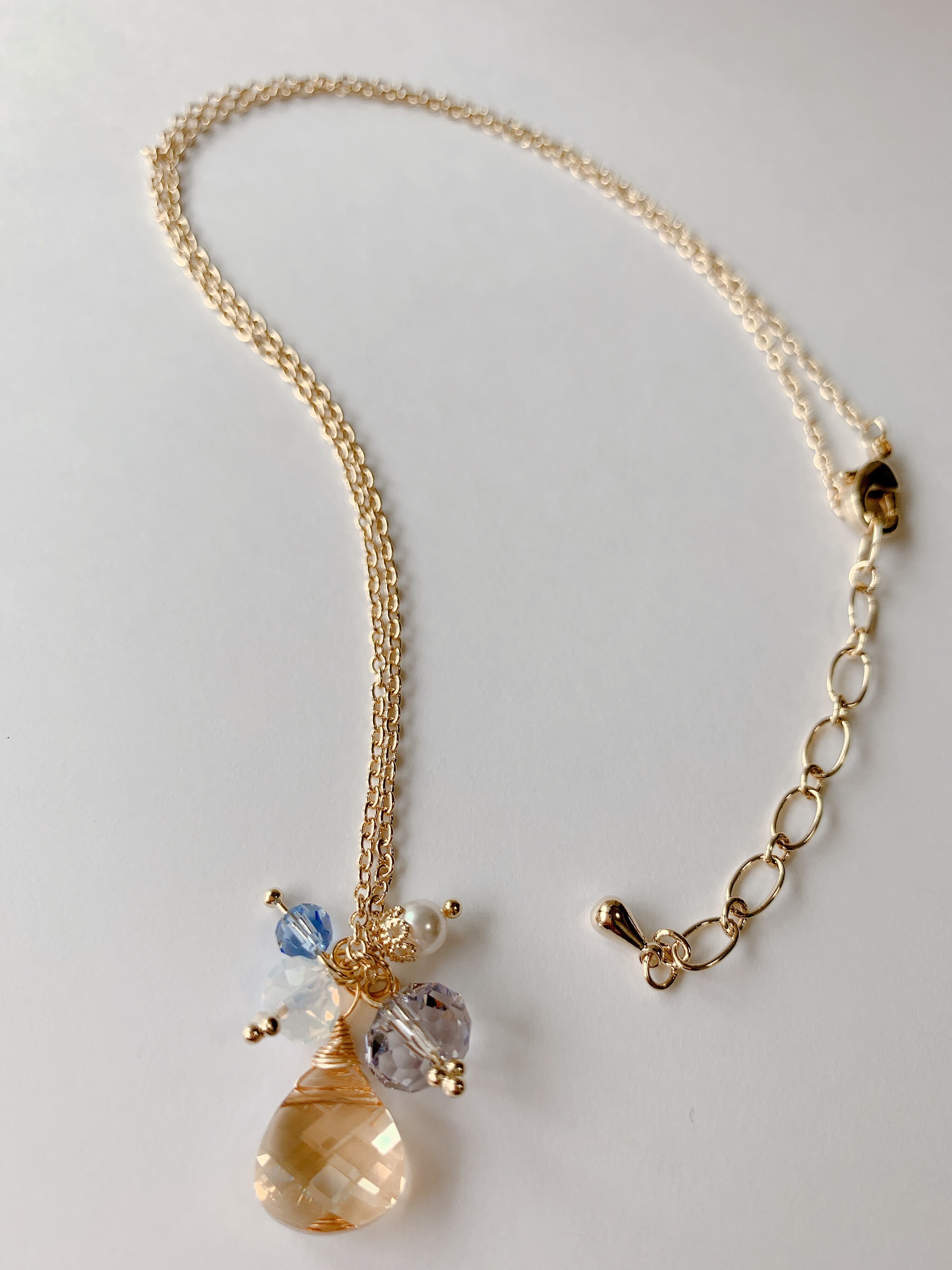 4種類のスワロフスキーとパールを組み合わせたネックレスです。