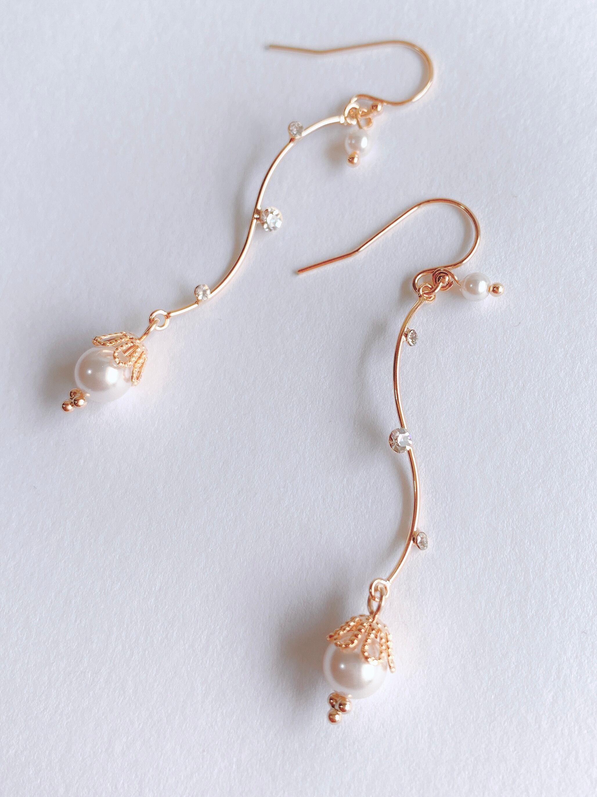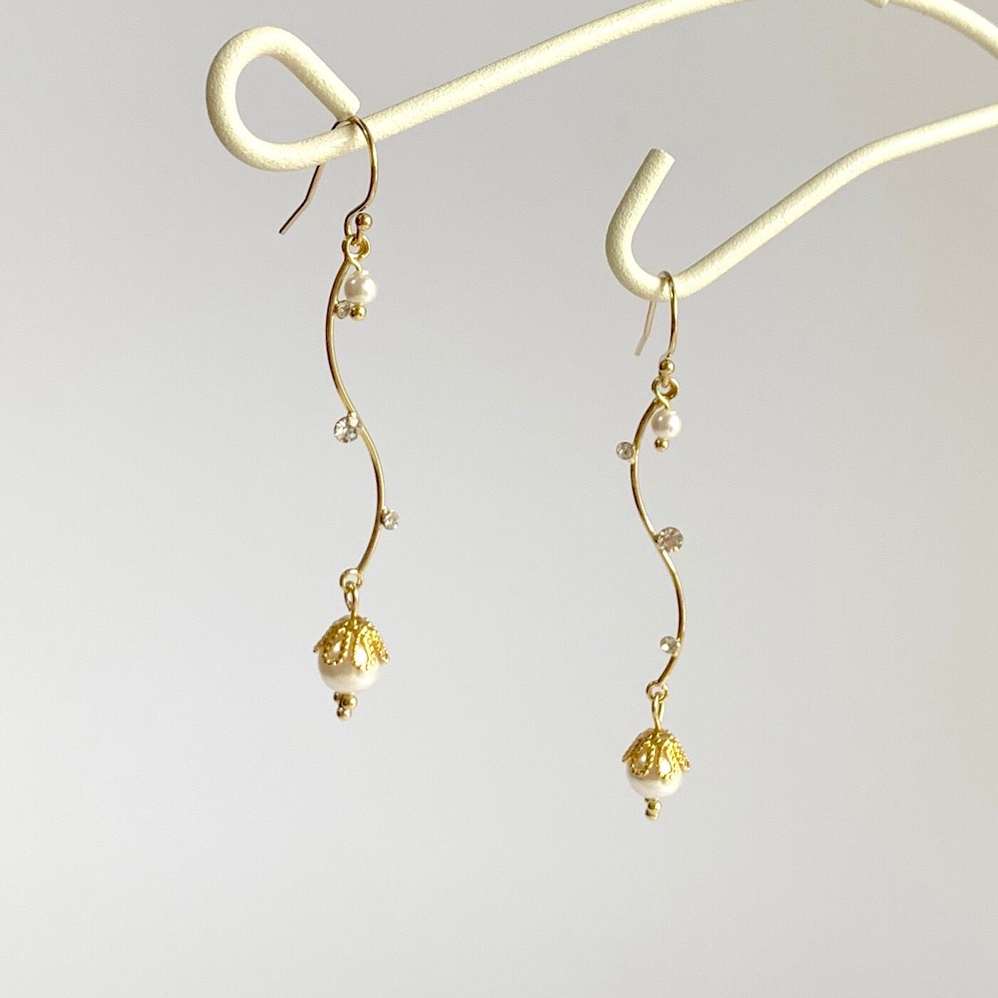 白いお花のウェーブピアス(スワロフスキーパール使用)