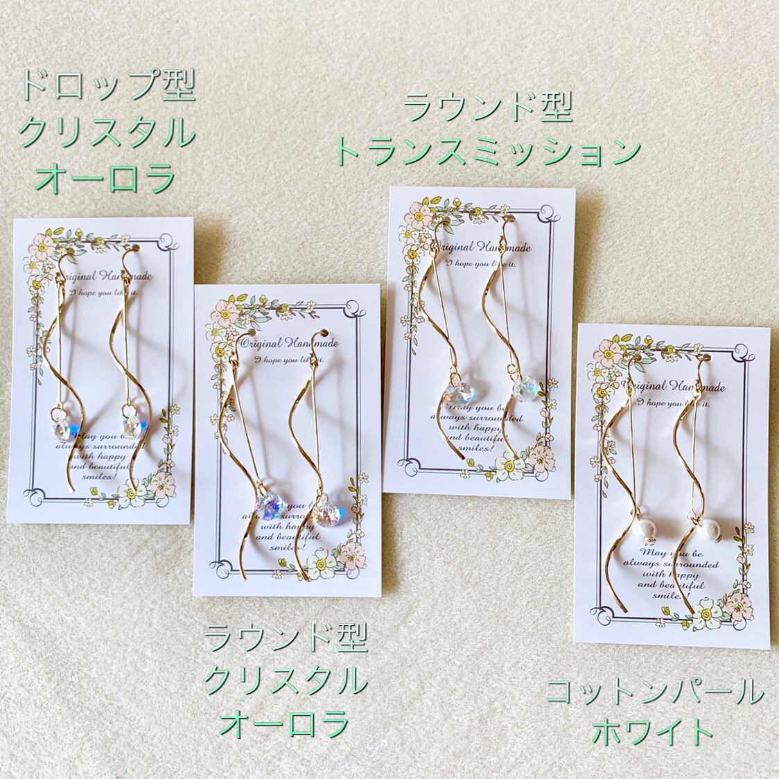 ①スワロフスキータイプ(ドロップ型/クリスタルオーロラ)