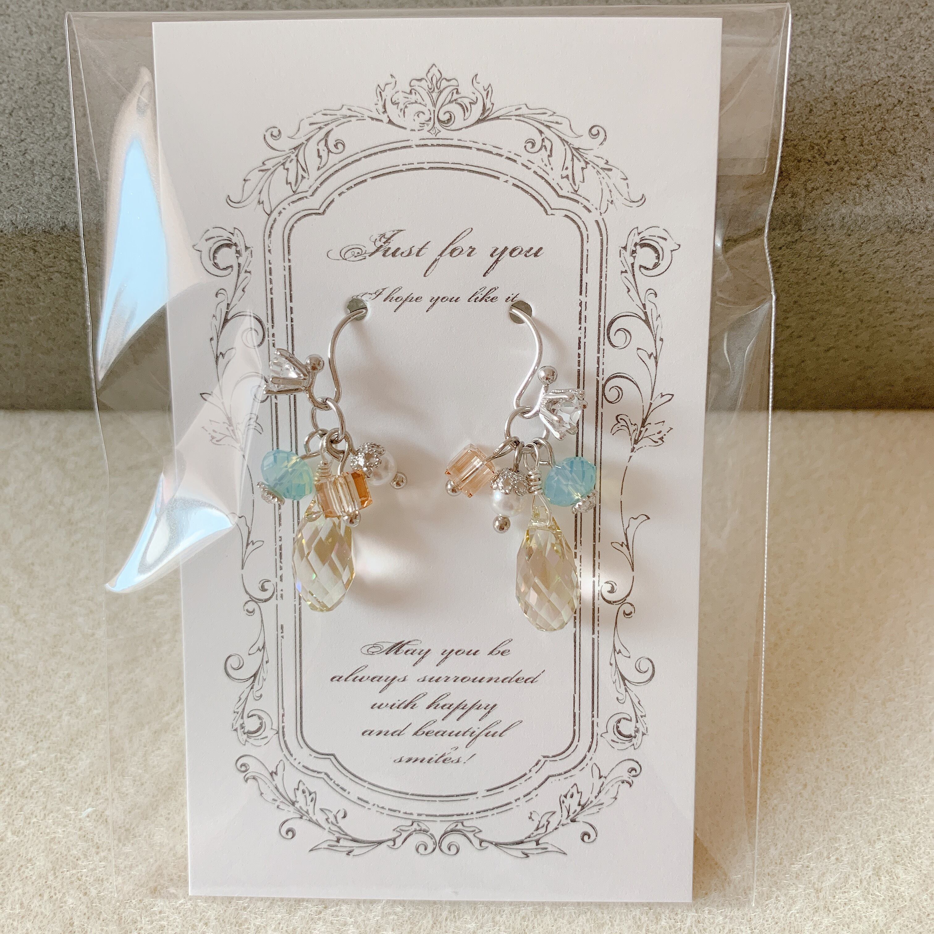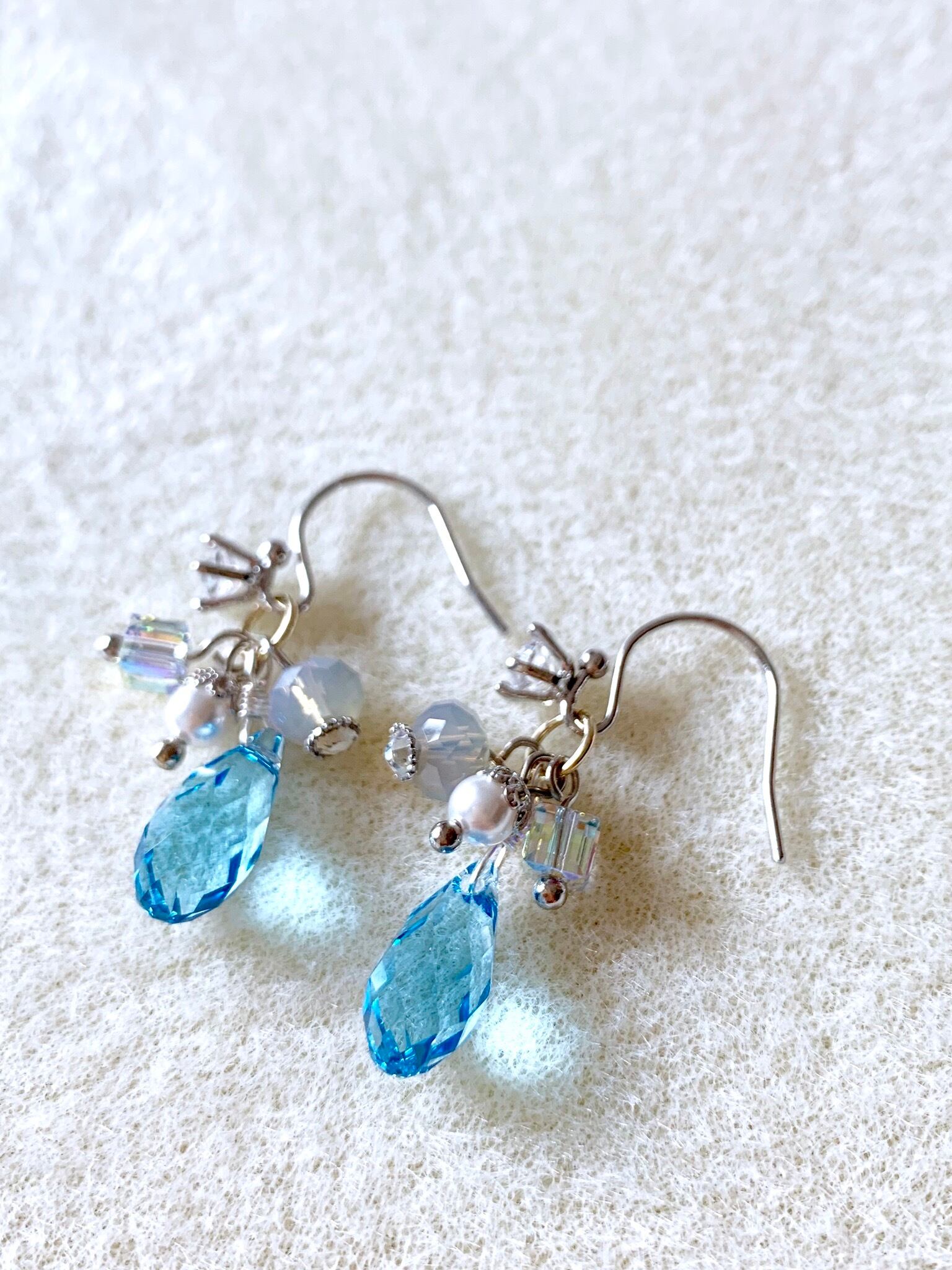 ピアスフックにはクリスタルの飾りがついていますが、スワロフスキーではありません。