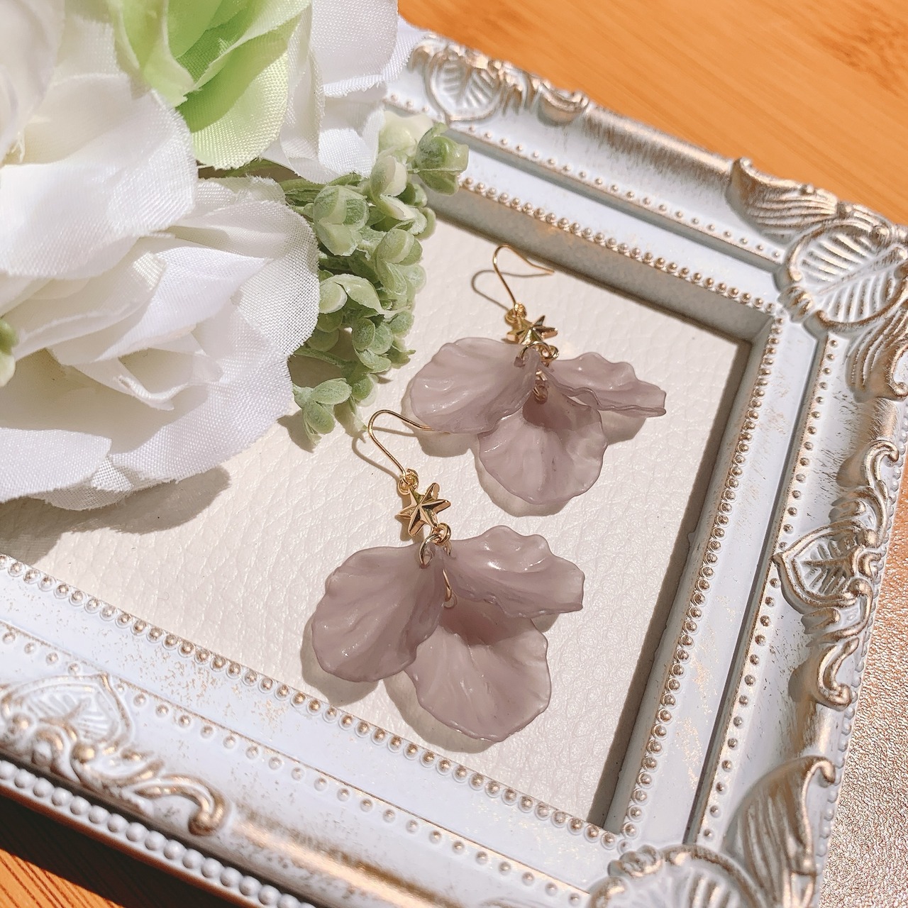 小さな星に花びらをつないだイヤリングです。淡い色合いが、優しい雰囲気です。